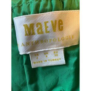 This Maeve Anthropologie crop top offers a stylish and trendy design. Its smocked and ruffled features deliver an elegant yet comfortable fit, perfect for a variety of occasions. The vibrant green color adds a pop of color to any outfit, making it a versatile choice for fashion-forward individuals.
