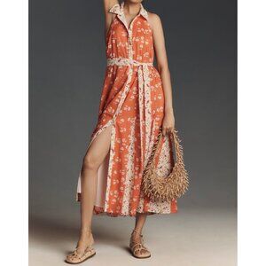 Maeve Anthropologie Halter Open-Back Godet Midi Shirt Dress Orange Floral Size L