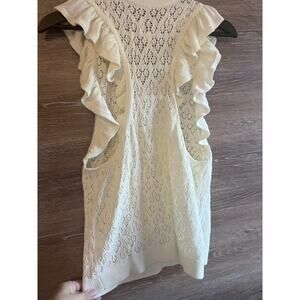 Maeve Anthropologie Halter Top Sweater Knit Ruffles Ivory Sz XL Preppy Tank