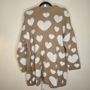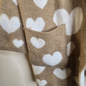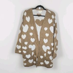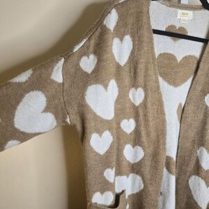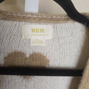 Maeve Anthropologie Hearts Cardigan Neutral Motif Open Front Brown Beige M/L