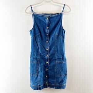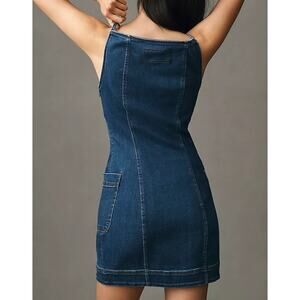 Maeve Anthropologie High Square-Neck Button-Front Denim Mini Dress Blue Medium