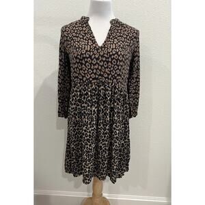 Maeve Anthropologie Juno Leopard Animal Print Dress Size XL Tunic Brown Fall M9