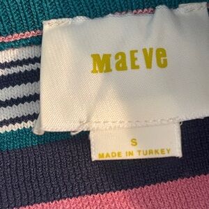 This Anthropologie Maeve Lana Midi Skirt adds the perfect mix of playful and sophisticated to your wardrobe. The vibrant multicolor stripes make it a standout piece, while the body-skimming silhouette and side slit add a flattering, modern touch. Lightweight and versatile—ideal for casual days with sneakers or dressed up with heels for work, date nights, or vacations.