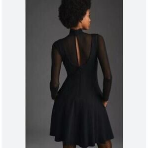 Maeve Anthropologie Layered Sheer Black Mini Dress Mock Neck Size XS NWT