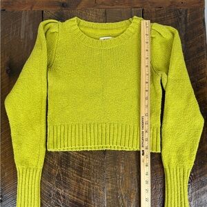 Maeve Anthropologie Lime Green Knit Sweater XXS Puff Sleeve Cropped Pullover