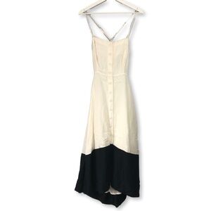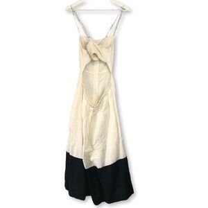 Maeve by Anthropologie linen blend white and black colorblock open back midi dress. Smocked detail.