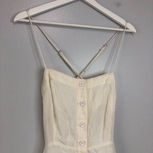 Features: Linen, faux button front, cutout back with adjustable straps, lined.