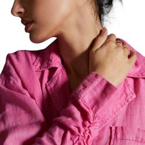 Maeve Anthropologie Linen Pink Ruched Sleeve Button Down Shirt S