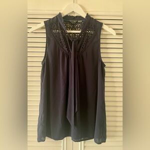 Maeve Anthropologie Luca Tie Neck Blouse Navy Eyelet Design SZ 4