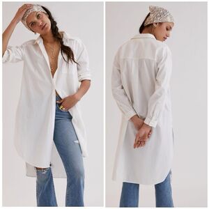 Maeve Anthropologie Maxi Tunic Poplin Button Down Top Cotton Petite Size Medium