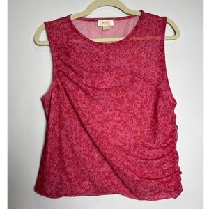 Maeve Anthropologie Mesh Pink Floral Sleeveless Ruched Tank Top Blouse XL