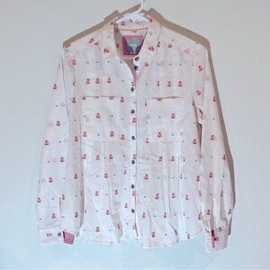 Maeve Anthropologie Miette Tee Pee Print Button Down Shirt Women's Size 4
