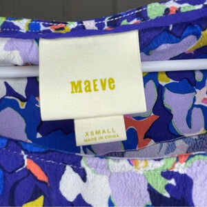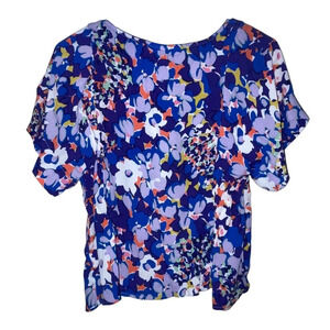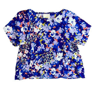 Maeve Anthropologie Milla Blue Floral Blouse Short Sleeve Top Size XS Colorful