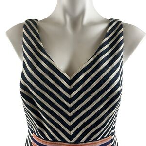 Beautiful fully embroidered striped chevron dress with a color contrasting band on front sleeveless hidden zipper on back full line V-neck two pockets. This dress is made with great quality. Super trendy and stylish designed to turn heads. NWOT Size 8
