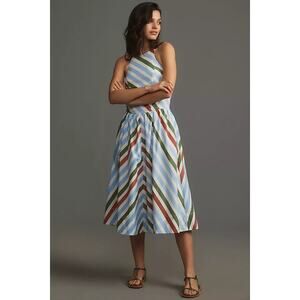 Maeve Anthropologie Multicolor Striped Sleeveless Halter A-Line Midi Dress