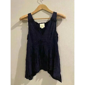 Maeve Anthropologie Navy Blue Empire Gathered Tank Blouse Top XS Rayon NWOT