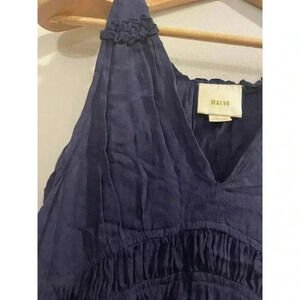 Anthropologie Maeve Navy Blue Empire Waist Ruched Sleeveless Top V-neckline, empire waist, ruched at the chest line and back, textured lightweight fabric, longer on the sides and back, pull over style. Imported. 100% Rayon.