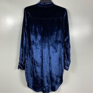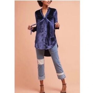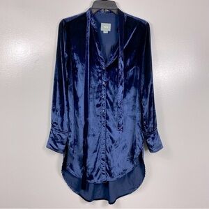 Maeve | Anthropologie Navy Blue Velvet button down Tunic High Low Top Size 2