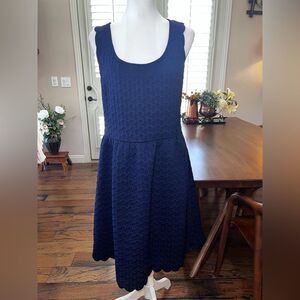 Maeve Anthropologie Navy Textured Sleeveless A-Line Dress (Size Large)