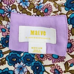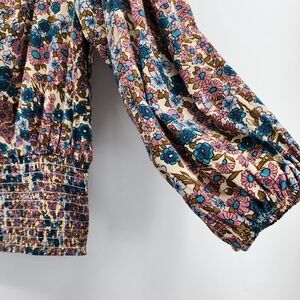 Maeve Anthropologie Odette Smocked Pink Blue Floral Blouse Medium