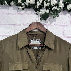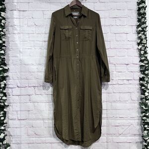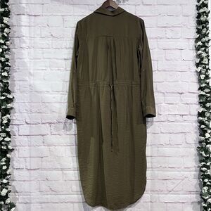 Maeve Anthropologie Olive Green Midi Button Front Drawstring Shirt Dress Size 6