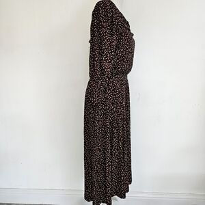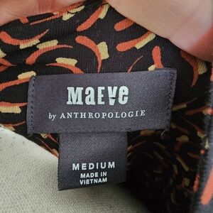 Maeve by Anthropologie printed dress with wrap style skirt and open back with fabric buttons. Extra button included on inner tag.