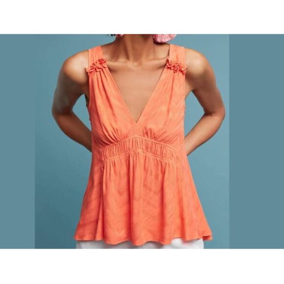 Maeve Anthropologie Orange Bretta Gathered Tank Top Women's Size Small V-Neck