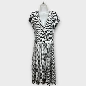Maeve Anthropologie Paladino Faux Wrap Black White Dress S Small Knit Ribbed