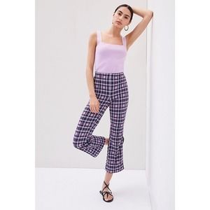 Maeve Anthropologie Pants Women's XS Purple Plaid Crop Kick Flare Knit Pull On