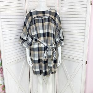 Maeve Anthropologie Plaid Kimono Tunic Dress Tie WaistTan Black Small