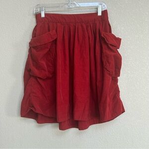 Maeve Anthropologie Red Cotton Ruffle Pocket Knee-Length A-Line Skirt Women’s Size 8