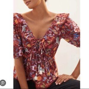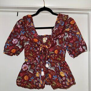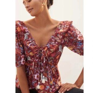 Maeve Anthropologie Ruffled Tie Front blouse size small