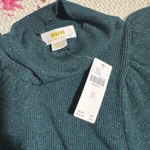 Maeve Anthropologie Shimmery Puff Sleeve Cut-Out Knit Top XS NWT