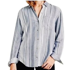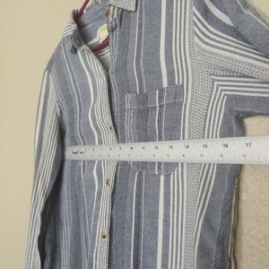 Maeve Anthropologie Shirt Button Blouse Size S Tunic Long Sleeve Striped Blue Wh