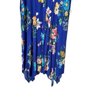 Maeve Anthropologie Shirt Dress 14 Blue Floral Button Front Sleeveless No Belt