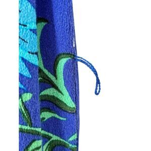 This Maeve Anthropologie shirt dress in size 14 features a beautiful blue floral pattern on a sleeveless design with a V-neckline and a button front closure. Made of viscose material with a rayon fabric type, this midi dress is ideal for summer, fall, and spring seasons. It includes pockets for convenience and is suitable for various occasions such as travel, parties, or casual wear. The colorful bohemian theme of the dress offers a vibrant and stylish look for women.