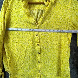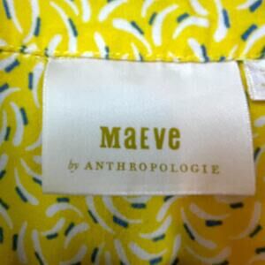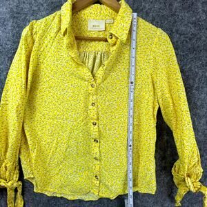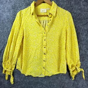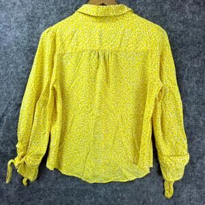 Maeve Anthropologie Shirt Womens 16 Yellow All Over Print Button Front Tie Wrist