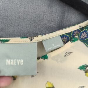 Whimsical and artistic, this Maeve by Anthropologie silk top combines elegance with everyday comfort. Featuring a playful acorn motif over soft cream silk with contrast geometric side panels, it embodies boho sophistication. The lightweight, airy fabric makes it ideal for spring and summer wear. Perfect for brunch, vacation, or creative work settings, this top pairs beautifully with denim or tailored trousers. A timeless addition for those who appreciate unique, art-inspired fashion.