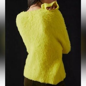 Anthropologie Simone V-neck sweater in bright yellow. It is fuzzy and made of a blend of merino wool.