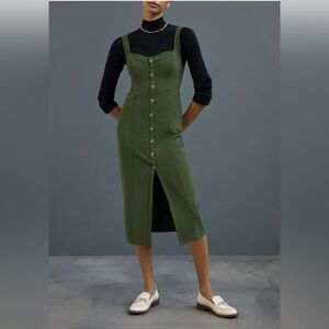 Maeve Anthropologie Size 0 Moss Green Knit Button Front Midi Dress Jumper