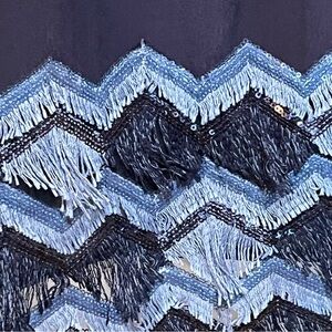 Maeve Anthropologie Size 12 Festivity Swing Dress Navy Blue Fringe Sleeveless