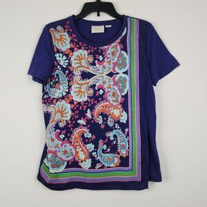 Maeve Anthropologie Size S Purple Multi Paisley Print Stretch Short Sleeve Top