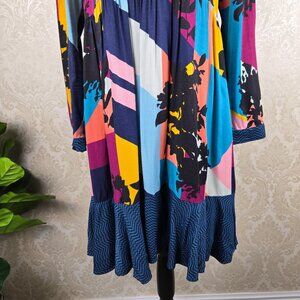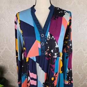 Maeve Anthropologie Size XS Colorful Abstract Swing Dress Long Sleeve Split Vnck