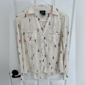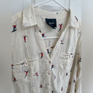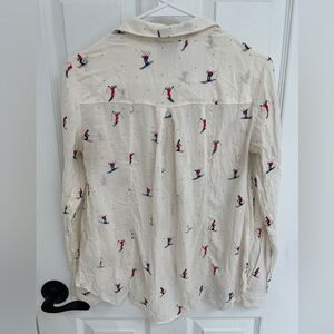 Maeve Anthropologie Skiers Pattern Off White Button Down Collared Shirt Size 0