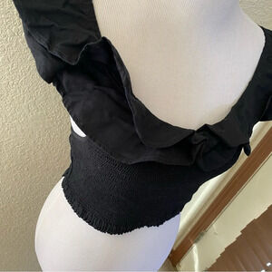 Maeve Anthropologie Smock Top Ruffle Neck Off The Shoulder Black Blouse: 6