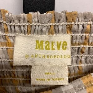 Maeve Anthropologie Smocked Top Yellow Plaid Small Cottagecore Western Cowgirl