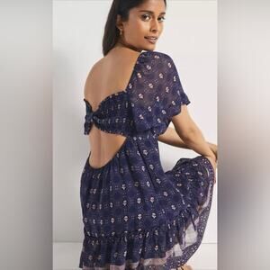 Item is New with Tags. Women's dres, 100% Cotton with Modal lining, Flared Sleeves, Bow style back accent, India print, Navy + Taupe, Empire waist, Ruffled hem, Refined and flattering, Cottagecore, Casual chic. PLEASE SEE ALL PHOTOS. Measurements taken laying flat: TBD