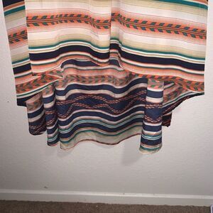 Beautiful colorful striped dress, high low hem. Fully lined. In excellent condition with no flaws.