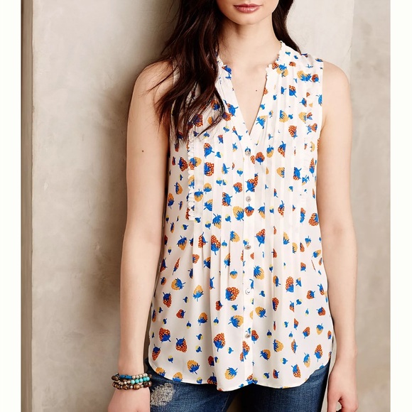 Maeve Anthropologie Strawberry Print Sleeveless Top 0