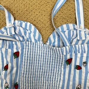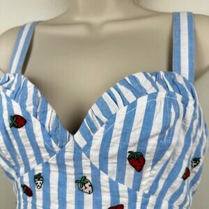 Maeve Anthropologie Striped Embroidered Strawberry Cami Top Blue 4 Coquette